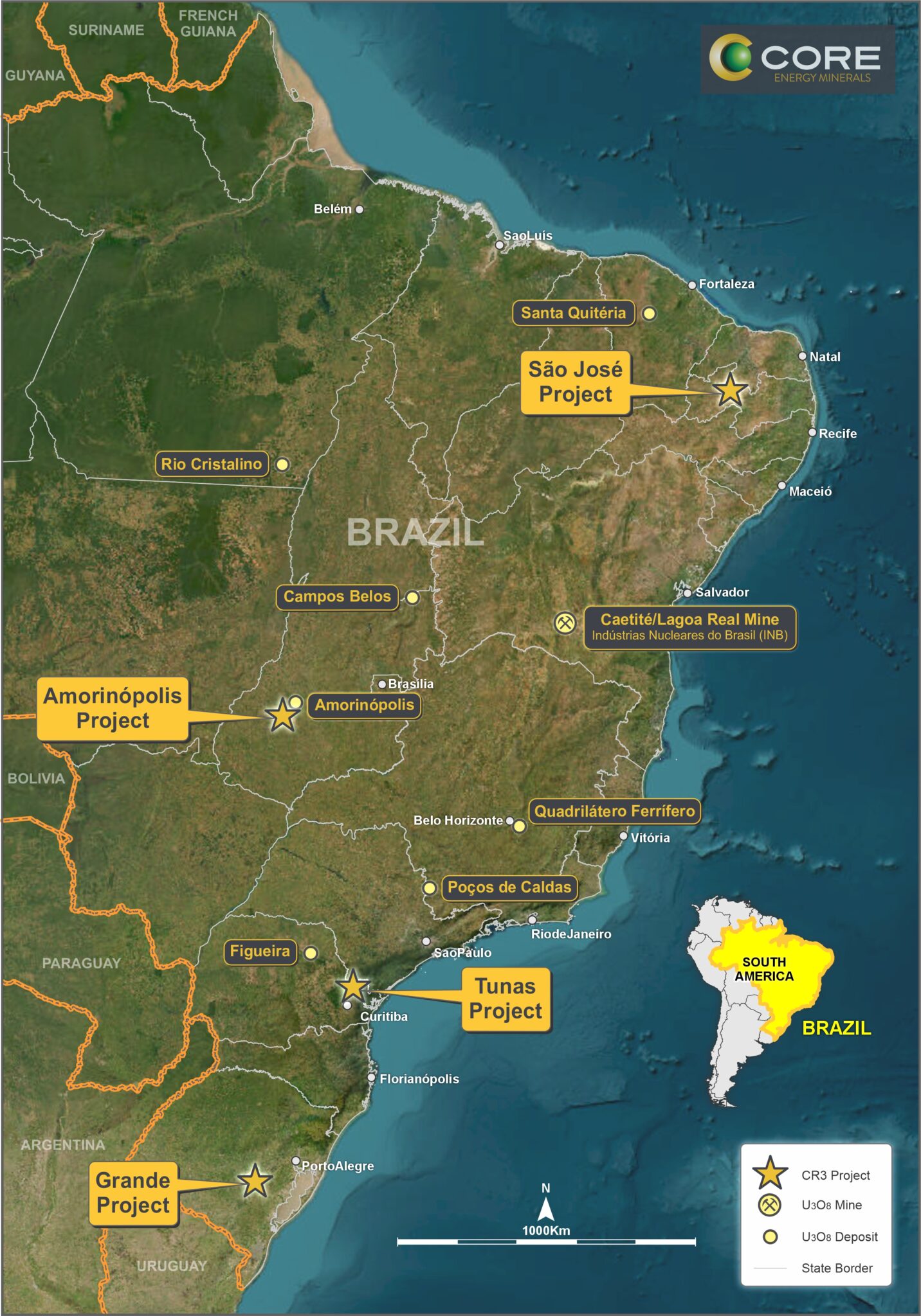 CORE has acquired high-quality projects and continues to assess additional areas of high geological potential within Brazil.